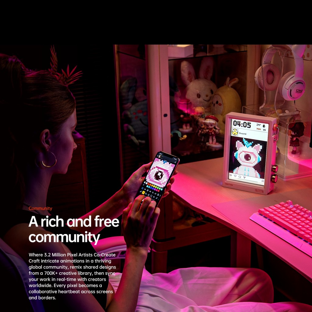 قاب دیجیتال Divoom Times Frame با طراحی نیمهشفاف و نمایشگر IPS، تجربهای تازه از تلفیق هنر پیکسلی، اعلانهای هوشمند و عملکرد روزانه را در فضای شما به نمایش میگذارد. این دستگاه نه تنها یک قاب عکس دیجیتال است، بلکه میتواند نقش ساعت هوشمند، داشبورد وضعیت (آب و هوا، بورس، تقویم)، و صفحه پیکسلی تعاملی را نیز ایفا کند.